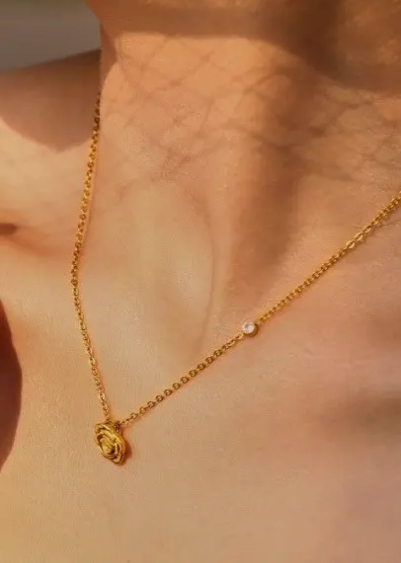 18kt gold plated stainless steel. Waterproof. Tarnish resistant.
